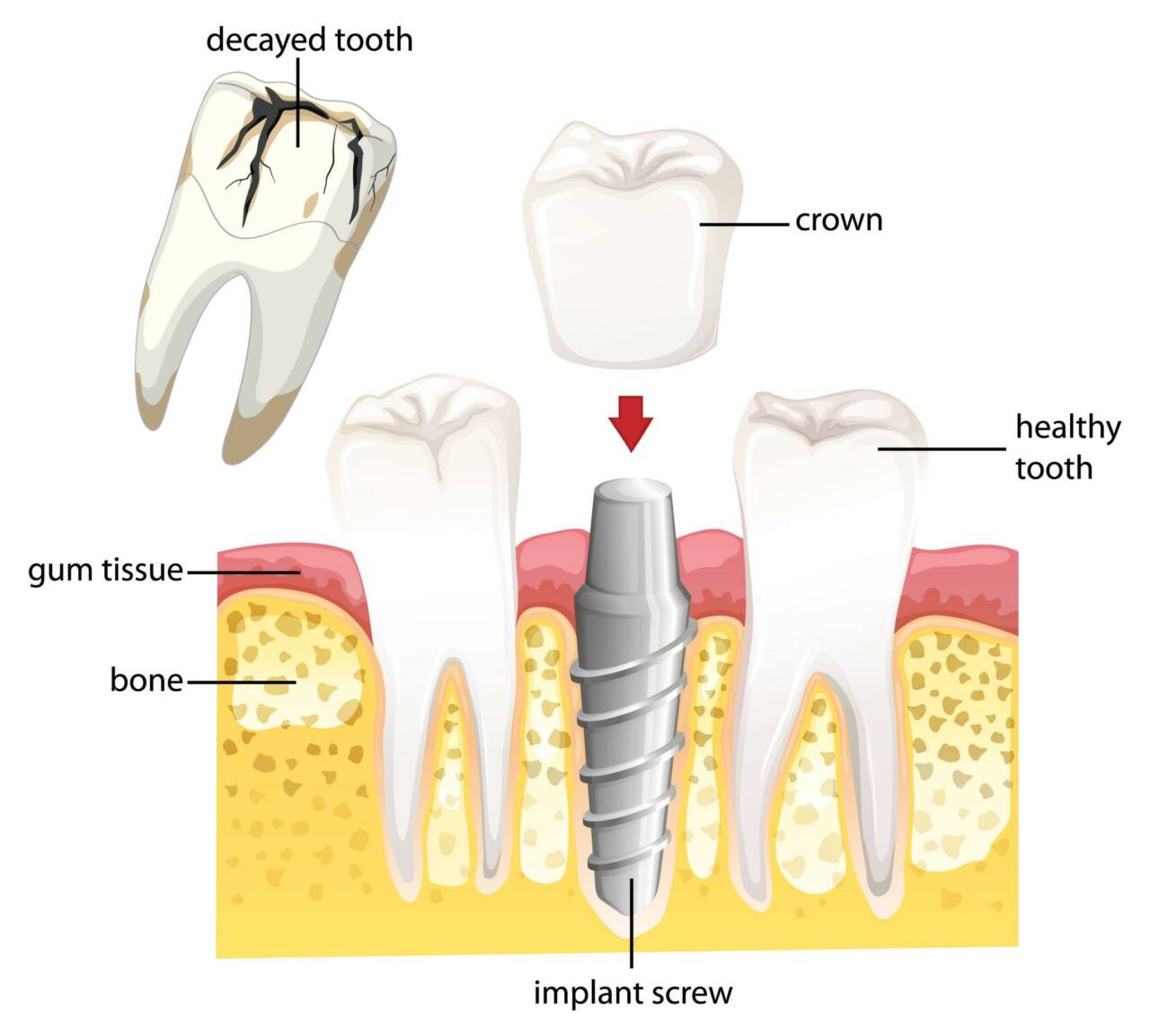 Dental implant, eksik dişlerin yerine çene kemiğine yerleştirilen, genellikle titanyumdan üretilmiş yapay diş köküdür. Bu yapay kök üzerine abutment (bağlantı parçası) ve en üstte kaplama diş (kuron) yerleştirilir.