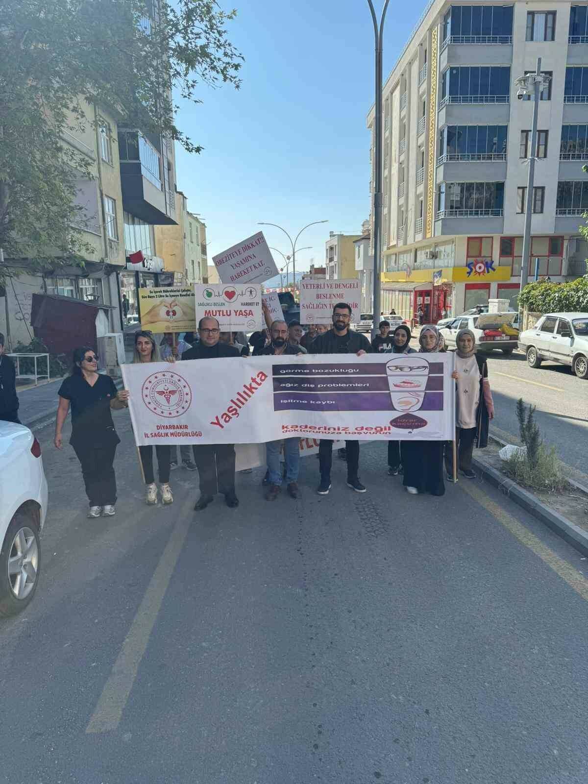 Diyarbakır'ın Dicle İlçe Sağlık Müdürlüğü tarafından düzenlenen farkındalık yürüyüşü, "Dünya Yaşlılar ve Dünya Yürüyüş Günü" kapsamında gerçekleştirildi. Sağlık çalışanları, sağlıklı yaşam ve hareketin önemine dikkat çeken pankartlar taşıyarak yürüdüler. Dicle İlçe Sağlık Müdürü Fırat Köse, yürüyüşün amacının toplumda sağlıklı yaşam alışkanlıklarını yaygınlaştırmak olduğunu belirtti. Yürüyüşe birçok sağlık personeli ve vatandaş da katıldı.