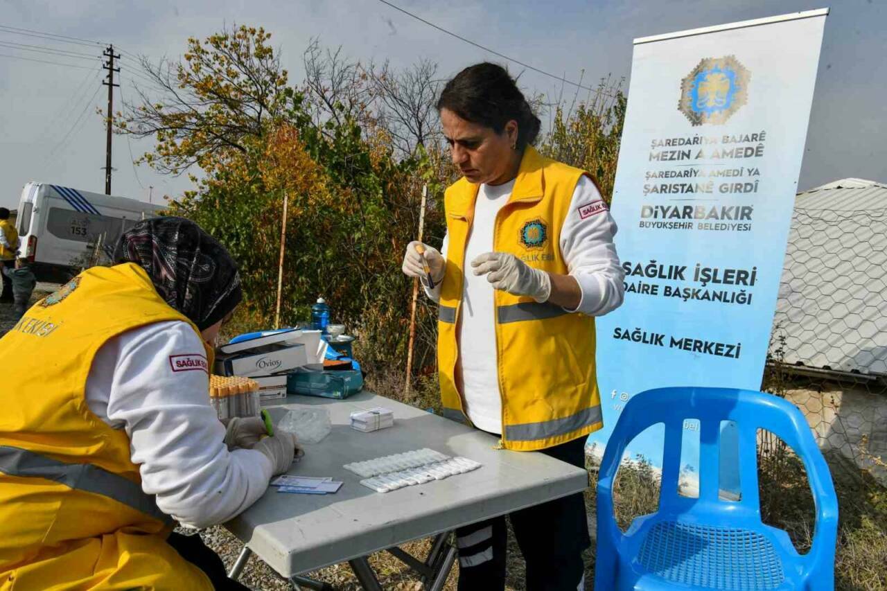 Diyarbakır Büyükşehir Belediyesi, Bismil ilçesine bağlı Güzelköy Mahallesi Tepekonak mezrasında vatandaşlara sağlık taraması gerçekleştirdi. Sağlık İşleri Dairesi Başkanlığı, kırsal bölgelerde sağlık hizmetlerine erişimi artırmak için çalışmalarını sürdürüyor. Büyükşehir Belediyesi Sağlık Dairesi Başkanlığı ekipleri, kapsamlı bir sağlık taraması düzenledi. Bismil Belediye Başkanı Mizgin Ekin ve Sağlık İşleri Dairesi Başkanlığı Sağlık İdari İşler Şube Müdürü Ümit Şahin de çalışmaya eşlik etti. Ekipler, hepatit testi, tansiyon ve şeker ölçümleri ile kan grubu tespiti yaptı. Elde edilen sonuçlara göre gerekli sağlık yönlendirmeleri ve bilgilendirmeler yapıldı. Program kapsamında çocuklara ağız ve diş sağlığı eğitimi verildi ve hediyeler dağıtıldı. Diyarbakır Büyükşehir Belediyesi, kırsal mahallelerde düzenli aralıklarla gerçekleştirdiği sağlık taramalarıyla vatandaşların temel sağlık hizmetlerine ulaşımını kolaylaştırmayı amaçlıyor.