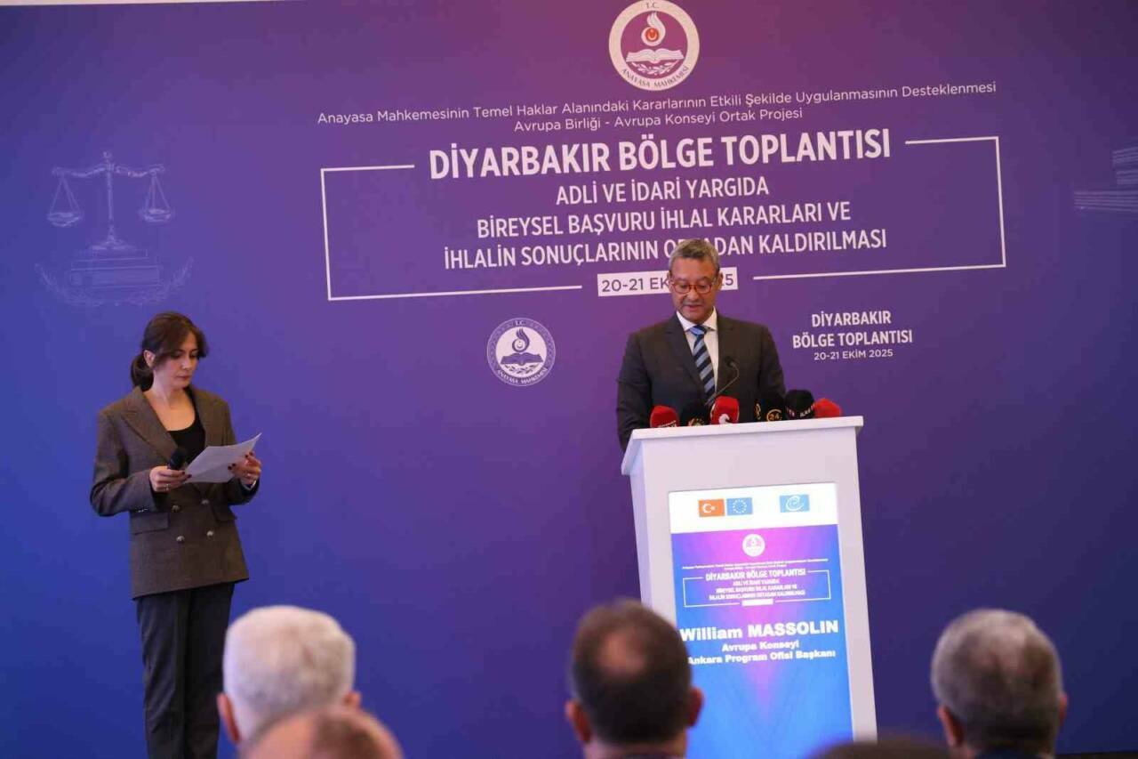 Özkaya, Diyarbakır’da başlayan “Adli ve İdari Yargıda Bireysel Başvuru İhlal Kararları ve İhlalin Sonuçlarının Ortadan Kaldırılması” konulu bölge toplantısında konuştu. Toplantıya Anayasa Mahkemesi Başkanı Özkaya, Yargıtay Başkanı Ömer Kerkez, Yargıtay Cumhuriyet Başsavcısı Muhsin Şentürk ve Avrupa Konseyi temsilcileri katıldı.