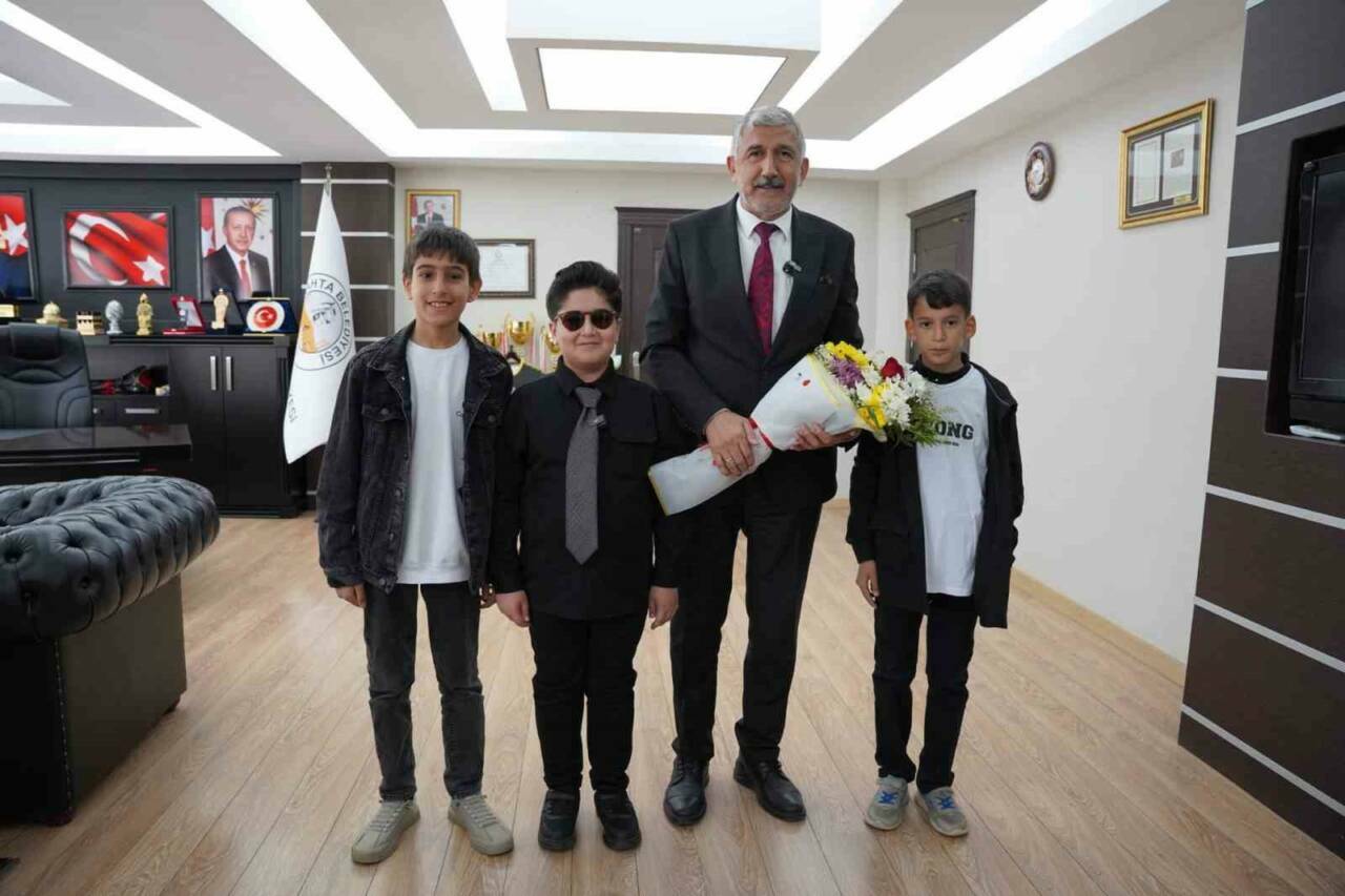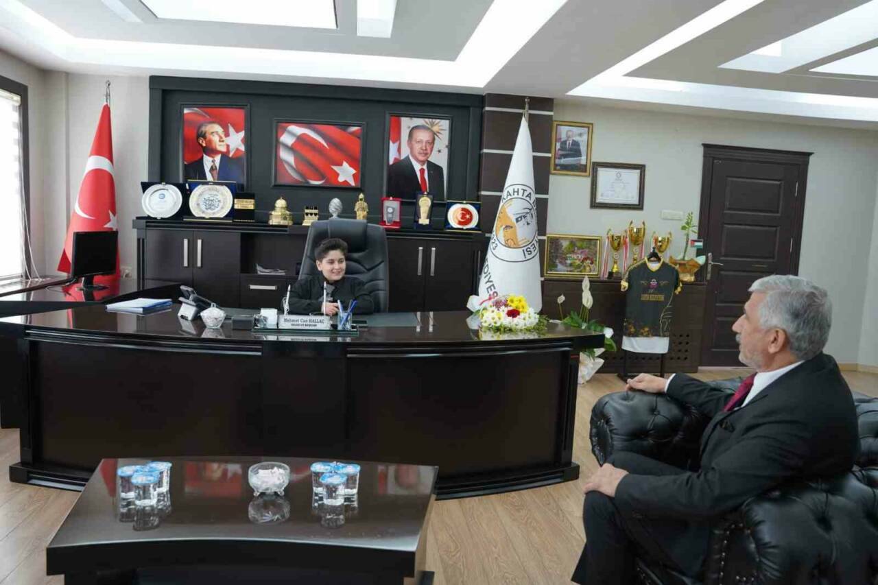Kahta Belediye Başkanı Mehmet Can Hallaç, bu özel günün ruhuna uygun olarak başkanlık koltuğunu Atatürk İlkokulu öğrencisi Ebubekir Eren Şaşmaz’a devretti.