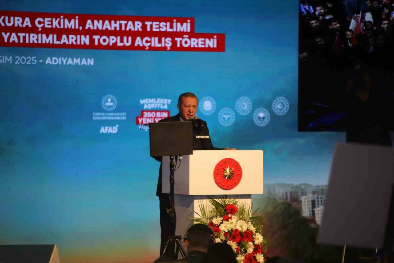 350 BİNİNCİ KONUTUN ANAHTAR TESLİM TÖRENİ İÇİN ADIYAMAN’A GELEN CUMHURBAŞKANI RECEP TAYYİP ERDOĞAN BURADA AÇIKLAMALARDA BULUNDU.