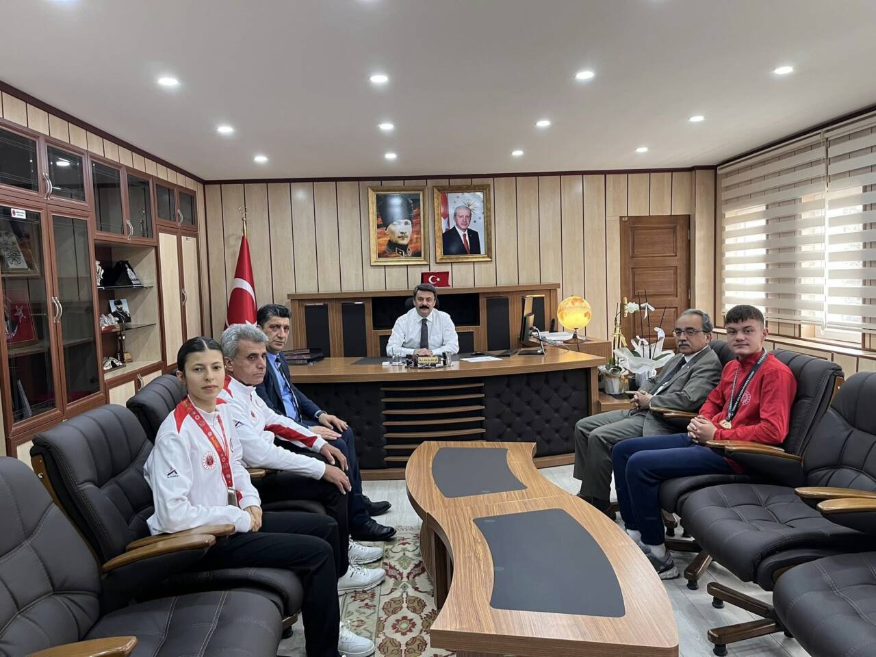 Ulusal ve uluslararası arenada elde ettikleri başarılarla dikkat çeken Besnili sporcular, Kaymakam Ahmet Oğuz Aslan’ı makamında ziyaret etti.