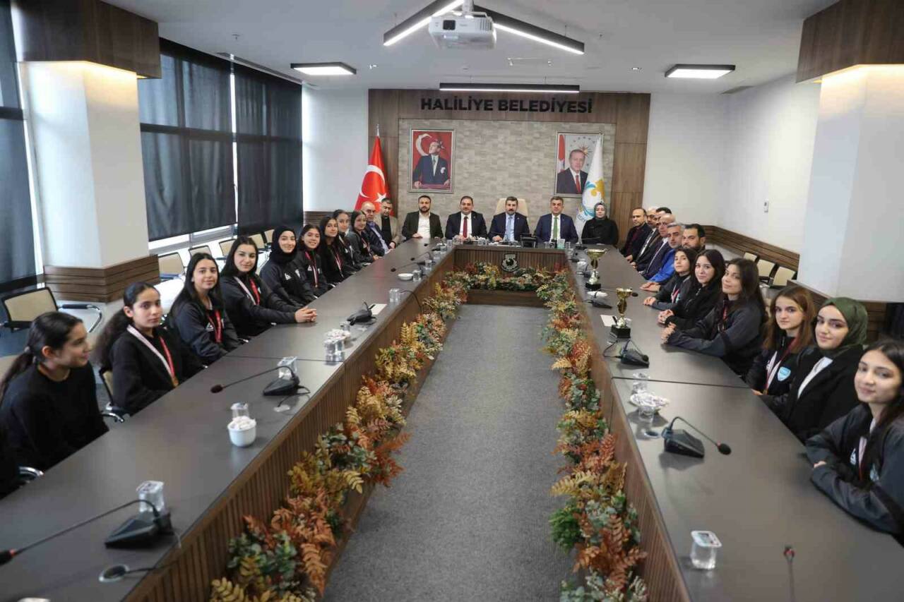 Canpolat, ziyarete ilişkin yaptığı açıklamada, “Haliliye Belediyesi olarak birçok branşta lisanslı sporcular yetiştirerek müsabakalara katılım sağlıyoruz. Basketbol, voleybol, tekvando, kick boks, futbol, güreş, yüzme ve halk oyunları başta olmak üzere birçok alanda altyapı çalışmalarımız devam ediyor. Bugün de 11-15 yaş grubundaki 20 kişilik yıldız kızlar takımımızın Şanlıurfa il birincisi olmasının gururunu yaşıyoruz. Sporcularımızı ve emeği geçen antrenörlerimizi tebrik ediyorum. Gençlerimizin motivasyonunu artırmak amacıyla bir araya gelmek ve onları onurlandırmak istedik. Haliliye Belediyesi olarak gençlerimizin eğitimde ve sporda her zaman yanında olmaya devam edeceğiz. Desteklerinden dolayı milletvekillerimize, il ve ilçe teşkilatlarımıza ve meclis üyelerimize teşekkür ediyorum. Başarılarınız daim olsun” dedi.