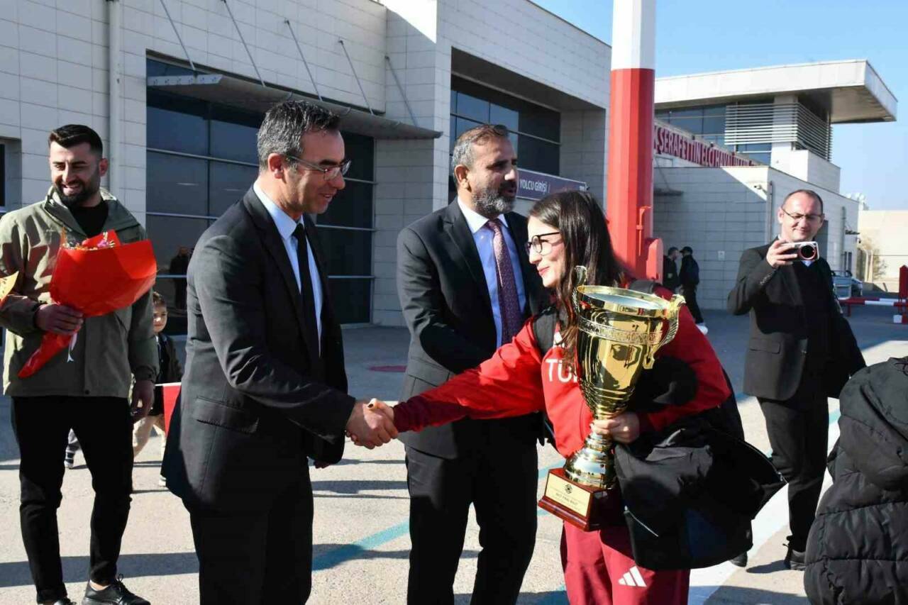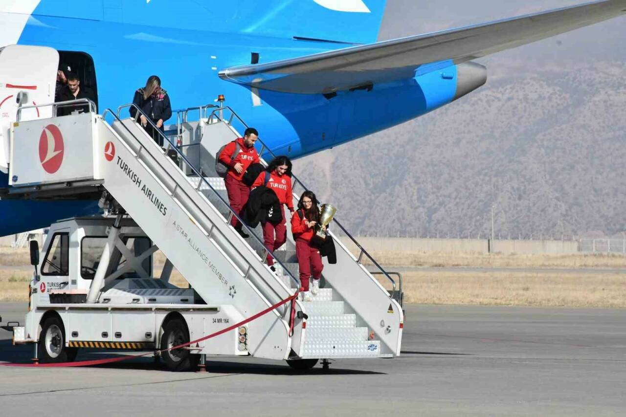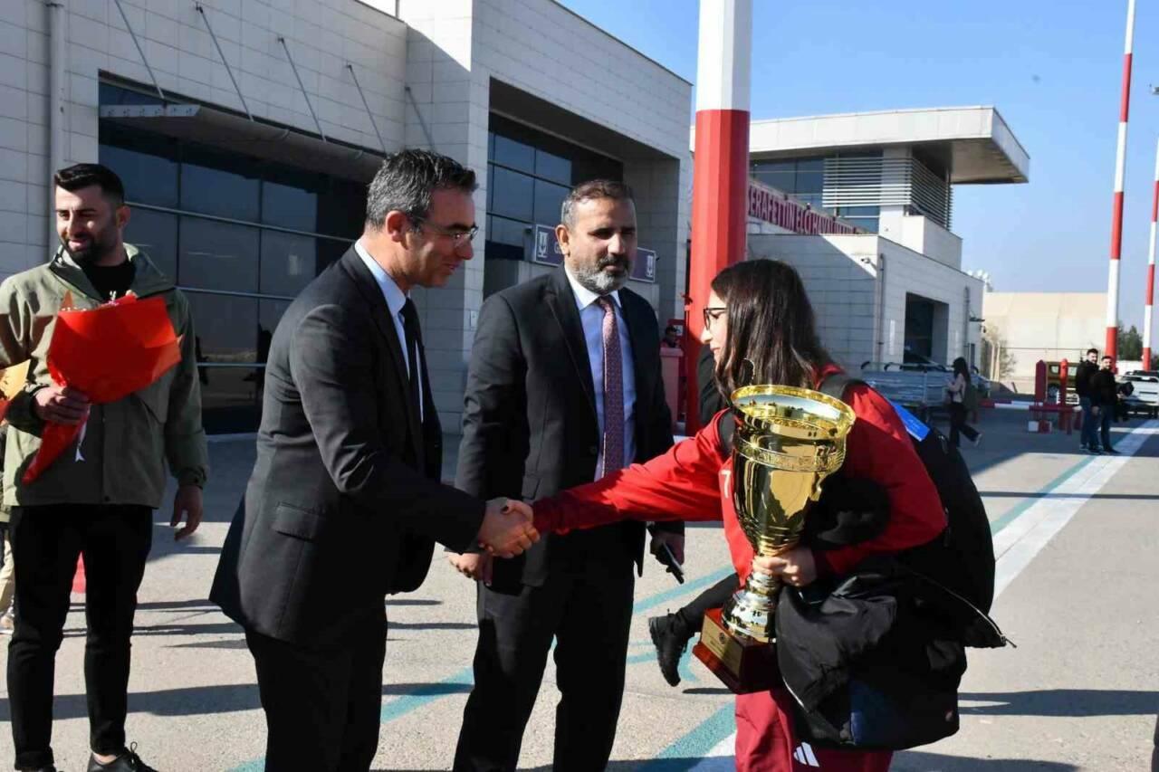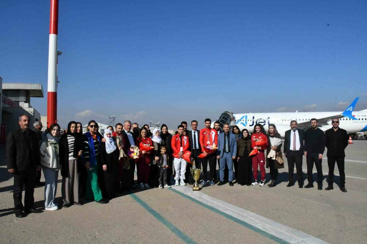 Şırnak Şerafettin Elçi Havalimanı'nda düzenlenen karşılama töreni ile Avrupa şampiyonu,