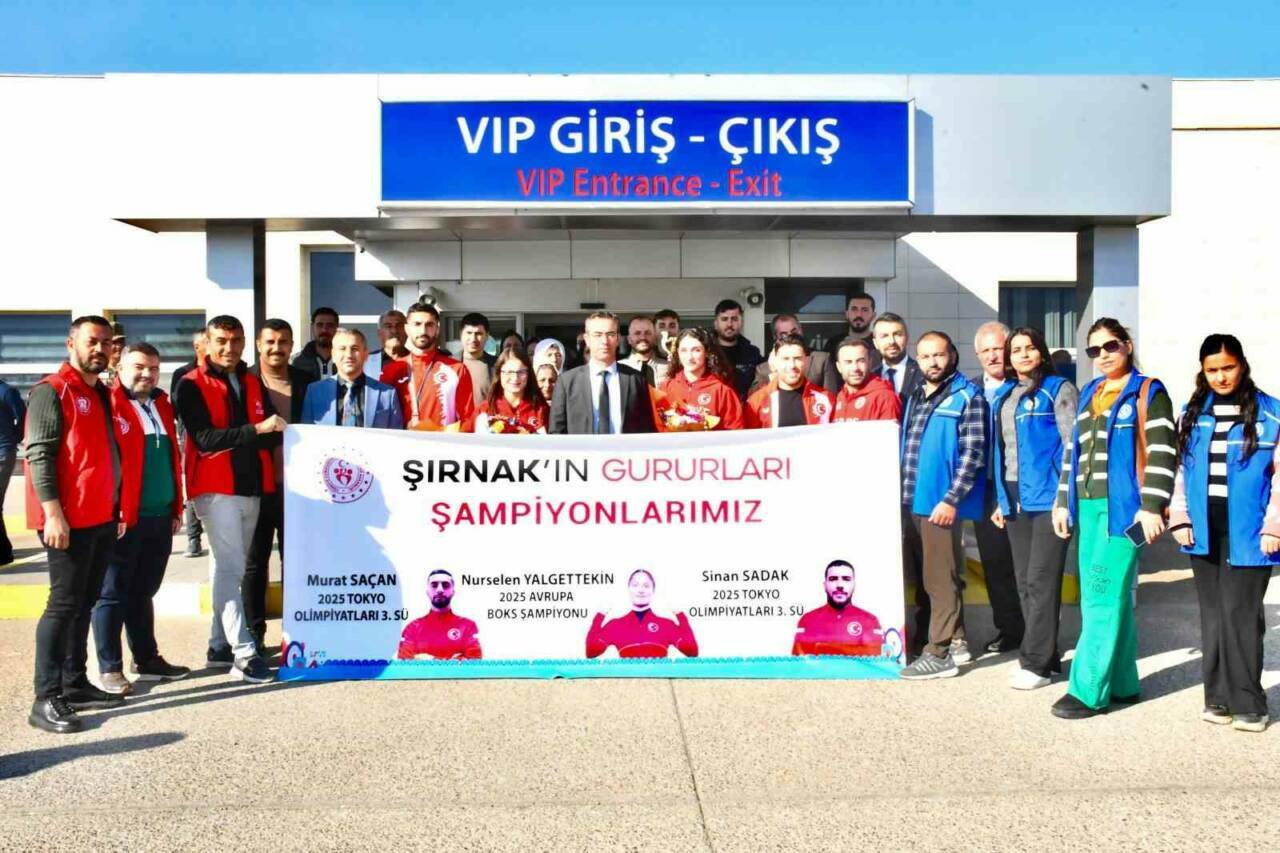 Şırnak Şerafettin Elçi Havalimanı, Avrupa şampiyonu, dünya gençler boks şampiyonası ikincisi ve Tokyo Olimpiyatları’nda dereceler elde eden sporcular için coşkulu bir karşılama törenine ev sahipliği yaptı. Nurselen Yalgettekin, Pınar Benek, Sinan Sadak ve Murat Saçan gibi başarılı sporcular, ‘Şehr-i Nuh’a hoş geldiniz’ pankartıyla karşılanarak Şırnak Valiliği’ne geçtiler.