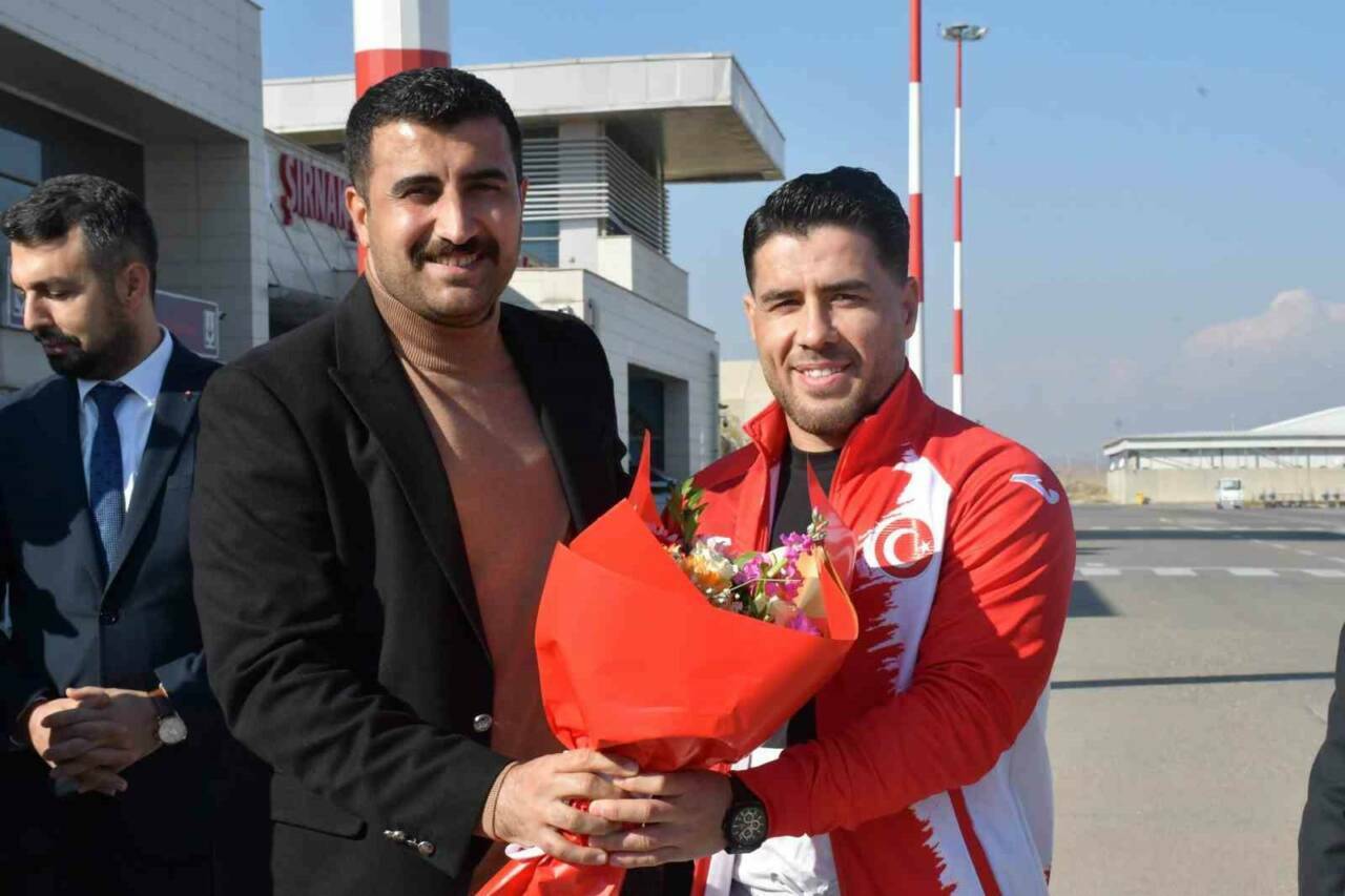 Şırnak Şerafettin Elçi Havalimanı’nda düzenlenen karşılama töreni ile Avrupa şampiyonu, dünya ikincisi ve olimpiyat dereceleri kazanan Şırnaklı sporcular coşkuyla karşılandı. Nurselen Yalgettekin, Pınar Benek, Sinan Sadak ve Murat Saçan, memleketlerine dönüşlerinde büyük bir sevgi gördüler ve sonra Şırnak Valiliği’ne geçtiler.