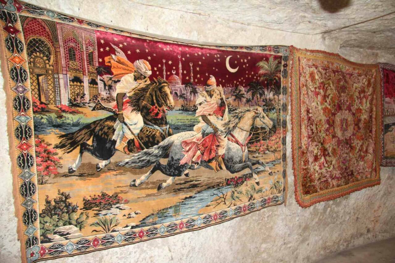 73 yaşındaki Mehmet Kaleoğlu, 200’den fazla eski duvar halısının bulunduğu mağarada yer alan ve en eskisi 150 yıllık olan halıların üzerinde alan hikayeleri merak eden ziyaretçileri de bilgilendiriyor. Eski eşyalara olan merakıyla 50 yılda topladığı yüzlerce ata mirasını sergileyerek mağarasını adeta bir halı müzesine çeviren ve ata kültürüne sahip çıkan Kaleoğlu, duvar halısı kültürünü gelecek nesillere aktarmak istiyor.