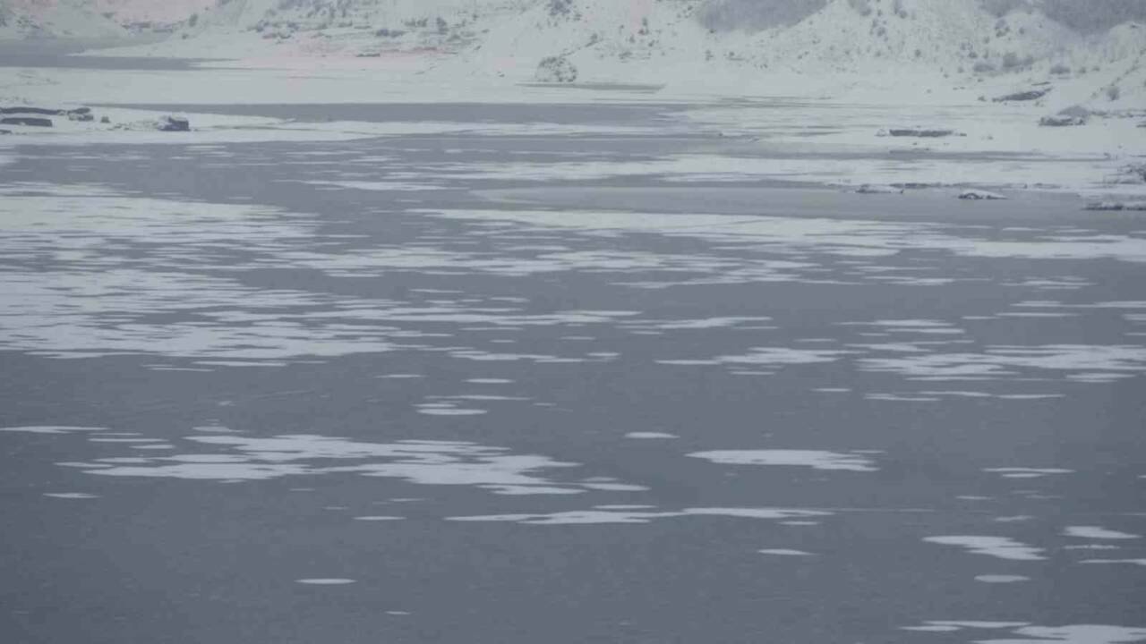 Adıyaman-Malatya karayolu üzerinde bulunan barajın donduğunu gören vatandaşlar araçlarından inerek o anları cep telefonlarıyla çekti.