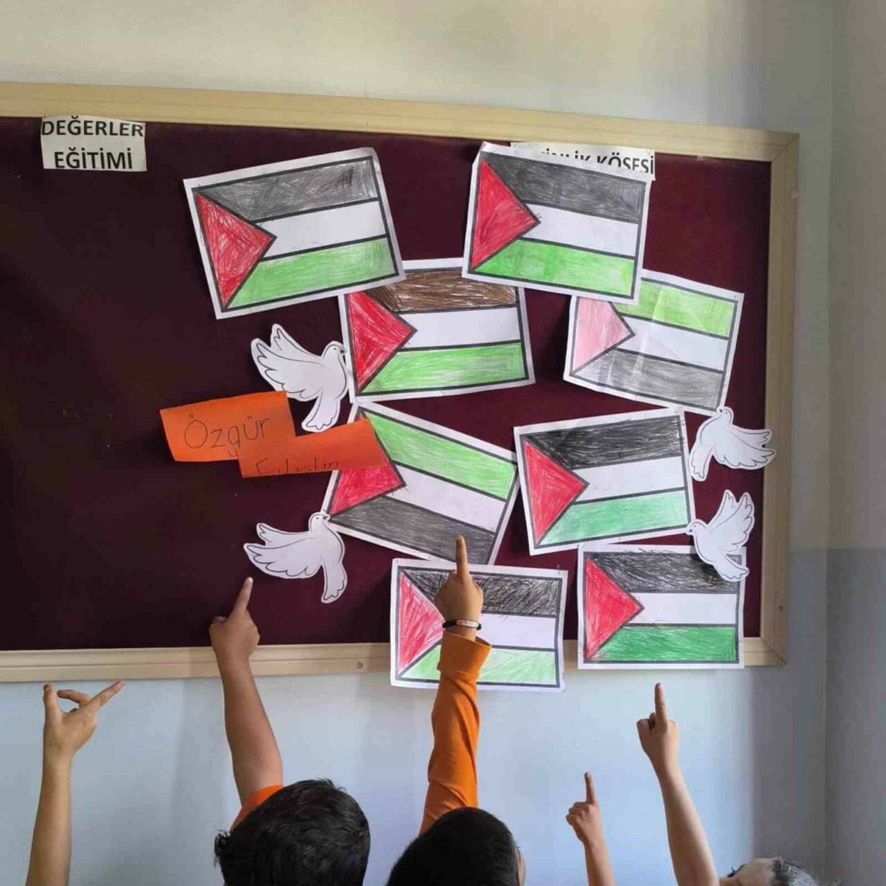 Gaziantep'in Araban ilçesindeki okullarda çeşitli etkinlikler düzenlenerek Filistin ve Gazze'ye destek mesajları verildi. Etkinlikler kapsamında öğrenciler tarafından 'Filistin' yazılı canlı koreografi yapıldı ve Filistin bayrakları çizildi. Araban İlçe Milli Eğitim yetkilileri, barışa, insan haklarına ve evrensel değerlere saygılı bir nesil yetiştirmeye kararlı olduklarını belirtti.