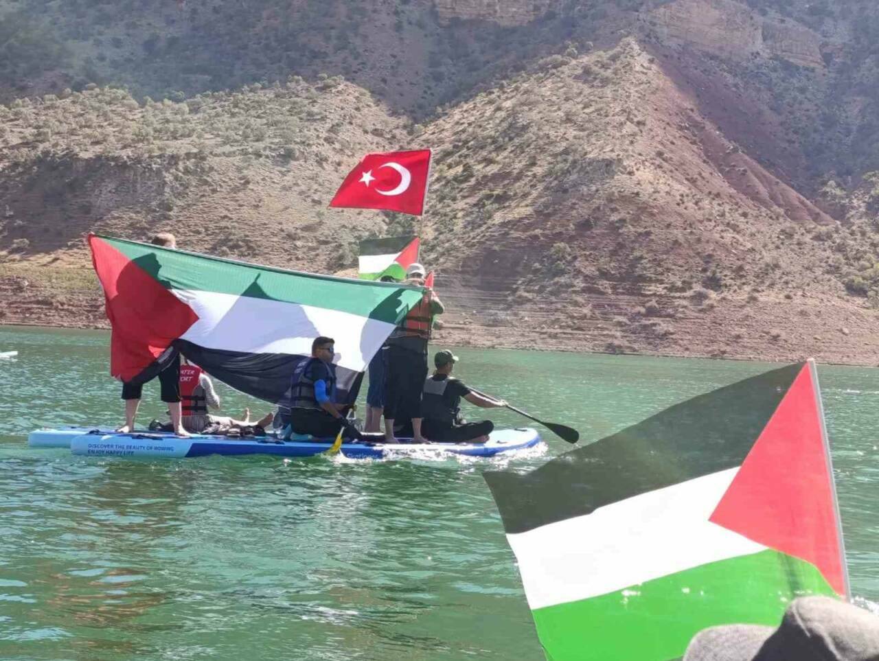 Siirt'te düzenlenen etkinlikte, Gazze'ye yardım götürmeye çalışan Küresel Sumud Filosu'na destek amacıyla Botan Çayı üzerinde Filistin'e destek gösterisi düzenlendi. Katılımcılar Türk ve Filistin bayrakları taşıyarak İsrail'in Gazze'ye yönelik saldırılarını kınadı ve uluslararası özgürlük filosuna destek mesajı verdi. Ayrıca, İsrail'in soykırım suçu işlediği vurgulanarak İslam ülkelerinin seslerini yükseltmeleri gerektiği belirtildi. Gazze'ye yardım götürmeye çalışan kardeşlerine destek veren katılımcılar, dünyanın bu duruma sessiz kalmaması çağrısında bulundu.