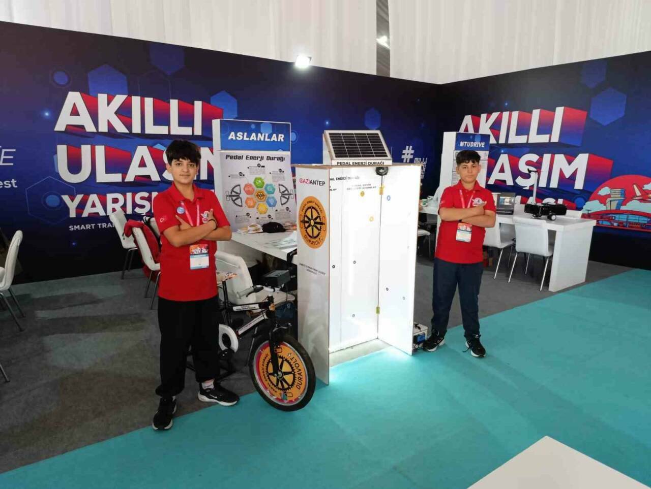 Gaziantep'te bulunan Samiye Teymur Emine Ulusoy Ortaokulu'nda öğrenciler, "Pedal Çevir Geleceği Aydınlat Projesi" ile büyük takdir topladı. Öncülüğünü Bilişim öğretmeni Ömer Güneş'in yaptığı proje, insanların pedal çevirerek elektrik üretmelerini ve bakiye kazanmalarını sağlıyor. Proje, TEKNOFEST'te finale kalarak büyük bir başarı elde etti. Öğrenciler, projeleriyle hem Gaziantep'i hem de okullarını gururla temsil ettiler. Projenin amacı, insanların verimli zaman geçirmelerini ve çevre bilinciyle büyümelerini sağlamak.__*/ **Türkiye'nin en büyük havacılık festivali olan TEKNOFEST'te büyük ilgi gören projenin hedefi, insanların kendi elektriğini üretip karşılığında bakiye kazanmalarını sağlamak.*/