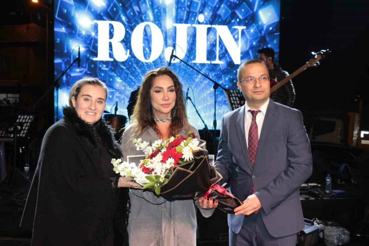 Konser sonunda Cizre Kaymakamı Ahmet Vezir Baycar, Rojin’e verdiği konserden dolayı teşekkür plaketi takdim etti.