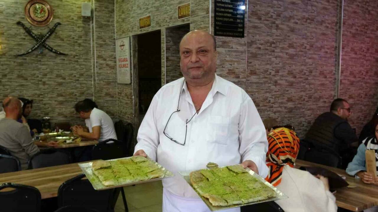 GAZİANTEP’E GELEN YERLİ VE YABANCI TURİSTLER, KENT MUTFAĞINDA ÖNEMLİ YERİ BULUNAN VE ANTEP FISTIĞI İLE KAYMAĞIN BULUŞTUĞU LEZZET OLAN KATMERİ YEMEDEN GİTMİYOR. KATMERCİLER İSE TURİST YOĞUNLUĞUNDAN MEMNUN OLUYOR.