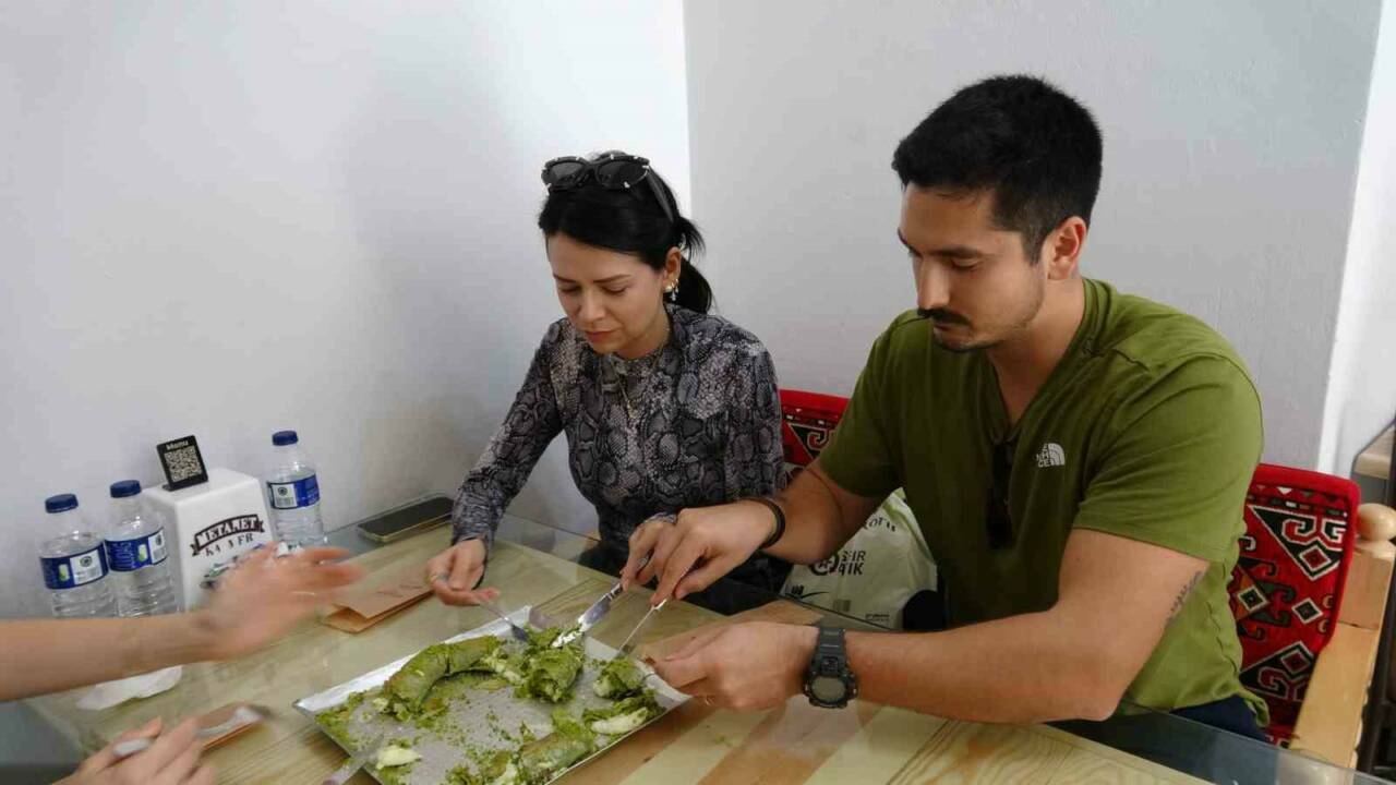 Gaziantep mutfağında önemli yeri olan ve kentte yoğun olarak tüketilen katmer, ağızları tatlandırdığı için turistler katmere hayran kalıyor.