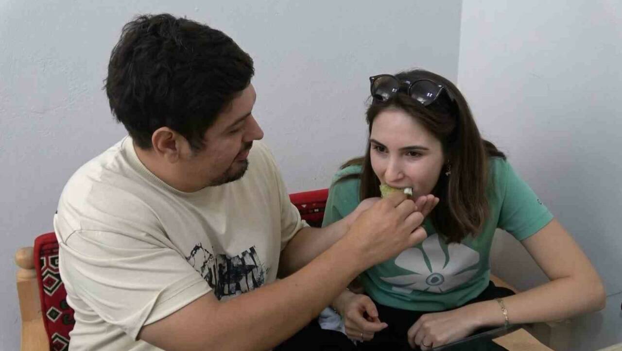 Gaziantep katmerini çok beğendiğini belirten Hazal Merve ise, “Bodrum’dan geliyoruz ve katmerin meşhur olduğunu duymuştuk. Buraya da denemek için geldik. Gerçekten övüldüğü kadar da varmış. Hepimiz çok memnun kaldık. Çok lezzetli, daha önce yediğimiz hiçbir katmere benzemiyor. Her şey yerinde güzel olduğu gibi katmerin de en lezzetli olduğu yer burasıymış. Denedik ve gördük” diye konuştu.
