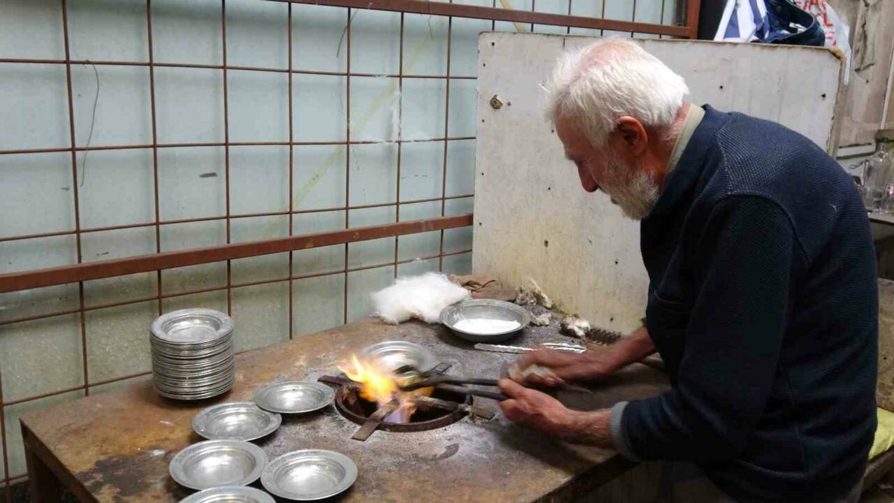 Babasının bir kalay ustasına çırak olarak vermesiyle yaklaşık 70 yıl önce mesleğe adım atan Osman Şimşek, bakır kapları kalaylamaya devam ediyor. Emekli olmasına rağmen mesleğine olan sevgisiyle ocağın başında çalışmaya devam eden Şimşek, tarihi Bakırcılar Çarşısı’ndaki diğer ustalar arasında öne çıkıyor.