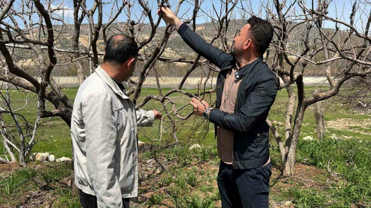 Bağlarbaşı Köyü Muhtarı ve üretici Ümit Taymur ise, “Geçen yıl, 2025 Nisan ayında büyük bir don felaketi yaşandık ve ağaçlarımız kurudu yani yüzde 100’e kadar zararı olan bahçelerimiz var. Kendi bahçemde var, kurudu söktüm. Hurma ağaçlarımız dona karşı çok güçlü değil. Gördüğünüz gibi şuanda yüzde 100 zarar görmüş bir ağaç” sözlerini kullandı.