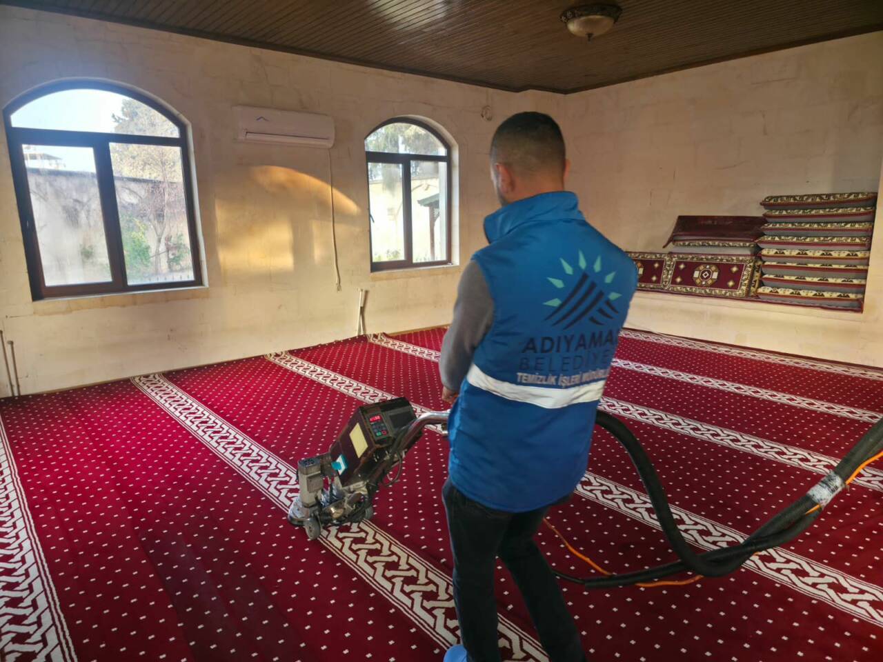 Adıyaman Belediyesi Temizlik İşleri Müdürlüğü ekipleri, kent merkezindeki cami, mescit ve türbelerde yürüttüğü temizlik çalışmalarını planlı bir program çerçevesinde sürdürüyor. Sabahın erken saatlerinde başlayan çalışmalar kapsamında ibadethanelerin halıları, zeminleri ve ortak kullanım alanları detaylı şekilde temizleniyor.