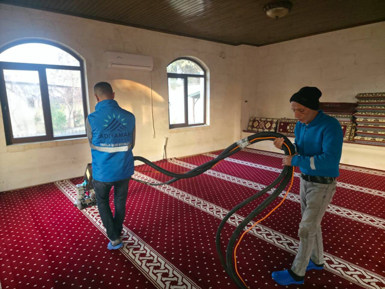 Adıyaman Belediyesi Temizlik İşleri Müdürlüğü ekipleri, kent merkezindeki cami, mescit ve türbelerde yürüttüğü temizlik çalışmalarını planlı bir program çerçevesinde sürdürüyor. Sabahın erken saatlerinde başlayan çalışmalar kapsamında ibadethanelerin halıları, zeminleri ve ortak kullanım alanları detaylı şekilde temizleniyor.