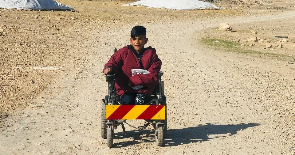 Şanlıurfa'nın Ceylanpınar ilçesinde bedensel engelli Enes Akkuş, akülü tekerlekli sandalyesine