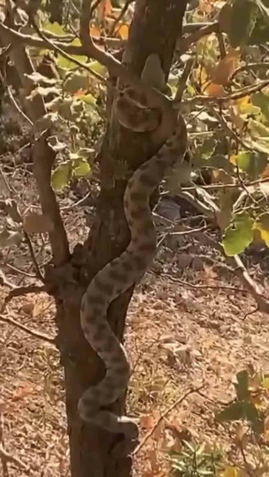Mardin’de engerek yılanı ağaca tırmanırken görüntülendi
