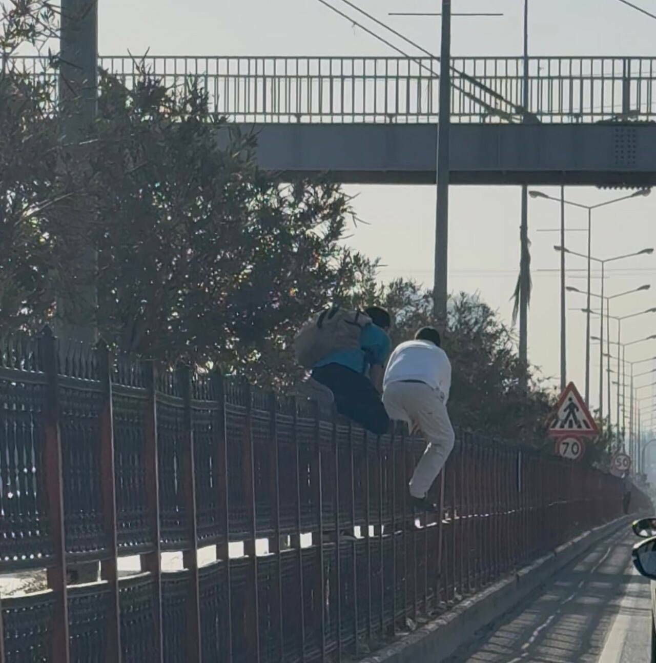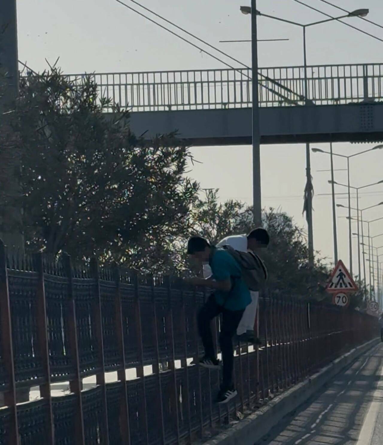 Diyarbakır-Elazığ yolu üzerinde bulunan Seyrantepe Spor Salonu önünde öğrenciler, üst geçidi kullanmak yerine refüjdeki telleri aşarak karşıya geçmeyi tercih ediyor. Bu tehlikeli davranış, sürücüler için ani fren yapma riski oluştururken, aynı zamanda öğrencilerin hayatlarını da tehlikeye atıyor. Bölgedeki öğrenciler, üst geçide sadece birkaç metre mesafede olmalarına rağmen bu riskli davranışı sergiliyor. Bu durum, trafiği de tehlikeye atmaktadır.