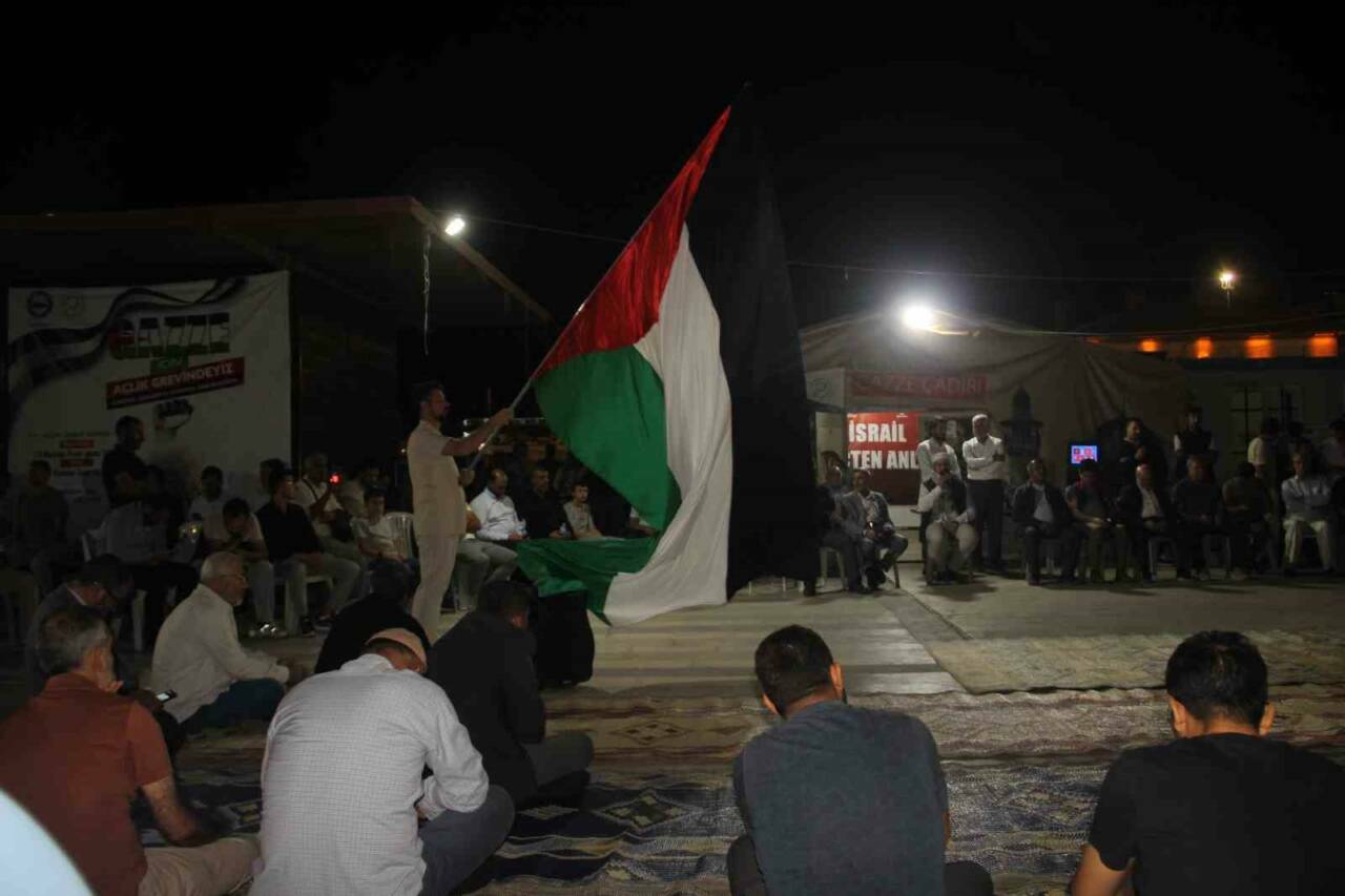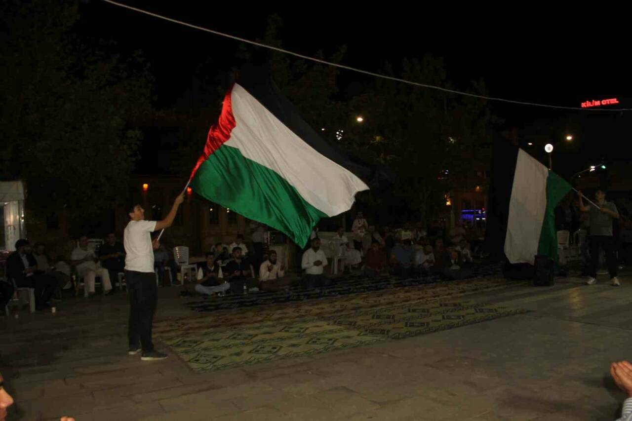 Şanlıurfa’da sivil toplum kuruluşlarının organize ettiği etkinlikte, Rabia Meydanı’nda bir araya gelen yüzlerce vatandaş, Gazze’ye insani yardım götüren ’Küresel Sumud Filosu’na yapılan saldırıyı kınayan bir nöbet tuttu. Katılımcılar, Filistin bayrakları taşıdı ve dualarla destek verdiler. Akşam saatlerinde başlayan etkinlik, gece geç saatlere kadar devam etti. STK temsilcileri, İsrail’in işlediği insanlık suçlarına dikkat çekerken, Sumud Filosu’nun vicdanın sesi olduğunu vurguladı.