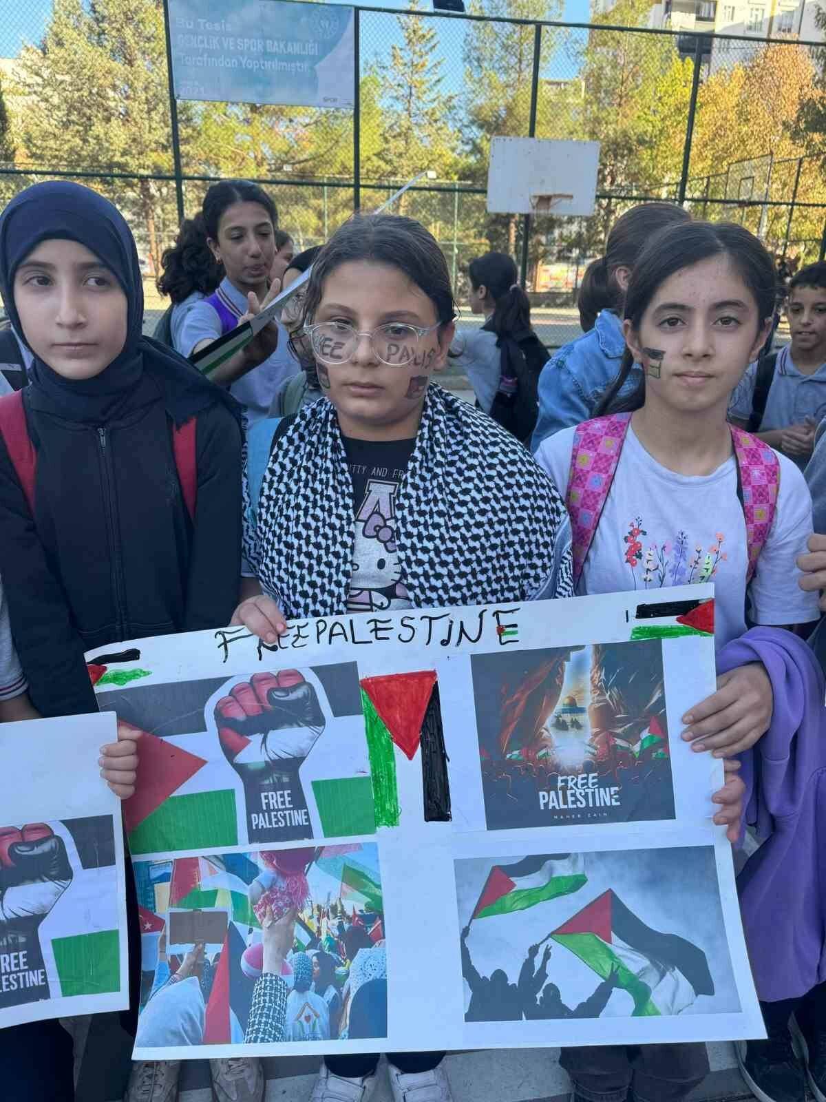 Selahaddin Eyyubi Ortaokulu öğretmen ve öğrencileri, Gazze halkına destek olmak amacıyla etkinlik düzenledi. Öğrenciler pankartlar hazırlayarak Filistin'deki insanlık dramına dikkat çekti ve dualar etti. Etkinlikte Gazze'deki sivillere yönelik saldırıların son bulması ve barışın tesis edilmesi çağrısında bulunuldu. Son olarak öğrenci ve öğretmenler Filistin bayraklarıyla yürüyüş yaptı ve dayanışma mesajları paylaşıldı.