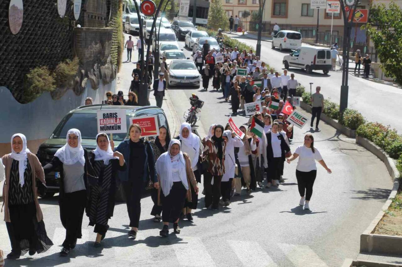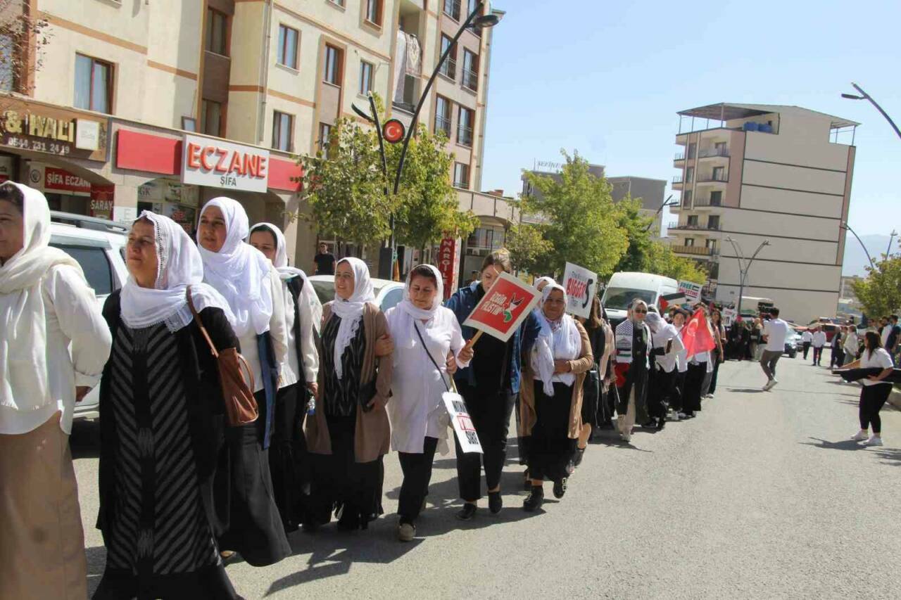 Şırnak’ta düzenlenen “Sessiz Çığlık” yürüyüşünde, kadınlar Gazze’deki insanlık dramına dikkat çekti. AK Parti Kadın Kolları tarafından gerçekleştirilen yürüyüşe Şırnaklı kadınlar yoğun ilgi gösterdi. Ellerinde Filistin bayrakları ve “Özgür Filistin” yazılı dövizlerle yürüyüşe katılan kadınlar, Şırnak merkezinde bulunan Ömer Kabak Meydanı’nda bir araya geldi. Yürüyüş, Kent Meydanı’nda sona erdi ve burada yapılan basın açıklamasında Gazze’deki dram vurgulandı.