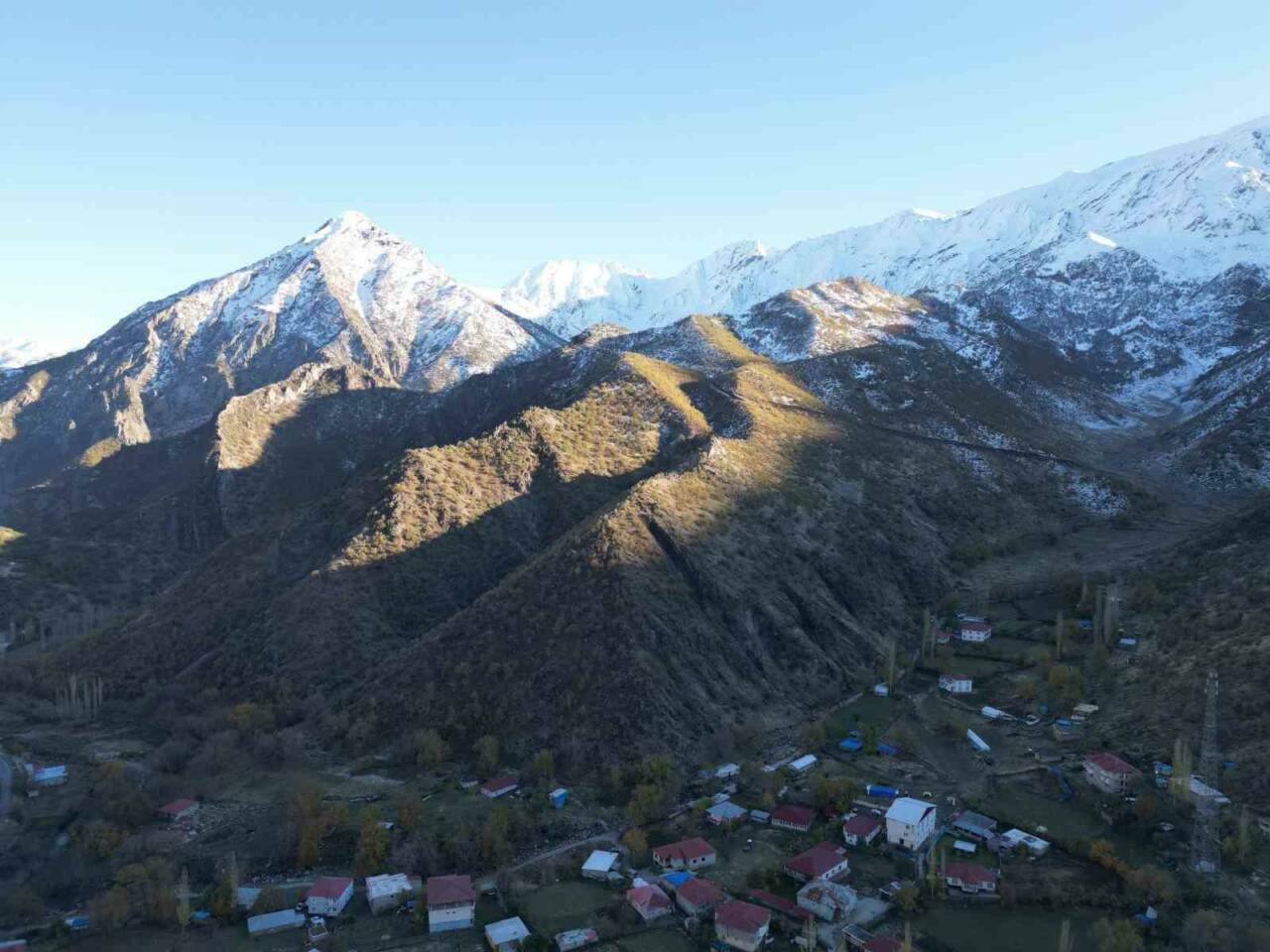 Şırnak’ın Beytüşşebap ve Uludere ilçelerinde, son günlerde etkili olan kar yağışıyla birlikte 3 bin rakımlı dağlar, kartpostallık manzaralar sergiliyor. Sonbahar aylarının son demlerinde bembeyaz bir örtüyle kaplanan Tanin ve Kato dağlarında kar kalınlığı 1 metreye ulaştı. Doğanın renk cümbüşünü barındıran bu manzara, adeta kartpostal karesinden fırlamış gibi gözüküyor. Havadan çekilen görüntülerde, dağlar, köyler ve meşe ormanları ile oluşan bu büyüleyici manzara izleyicilere görsel bir şölen sunuyor.