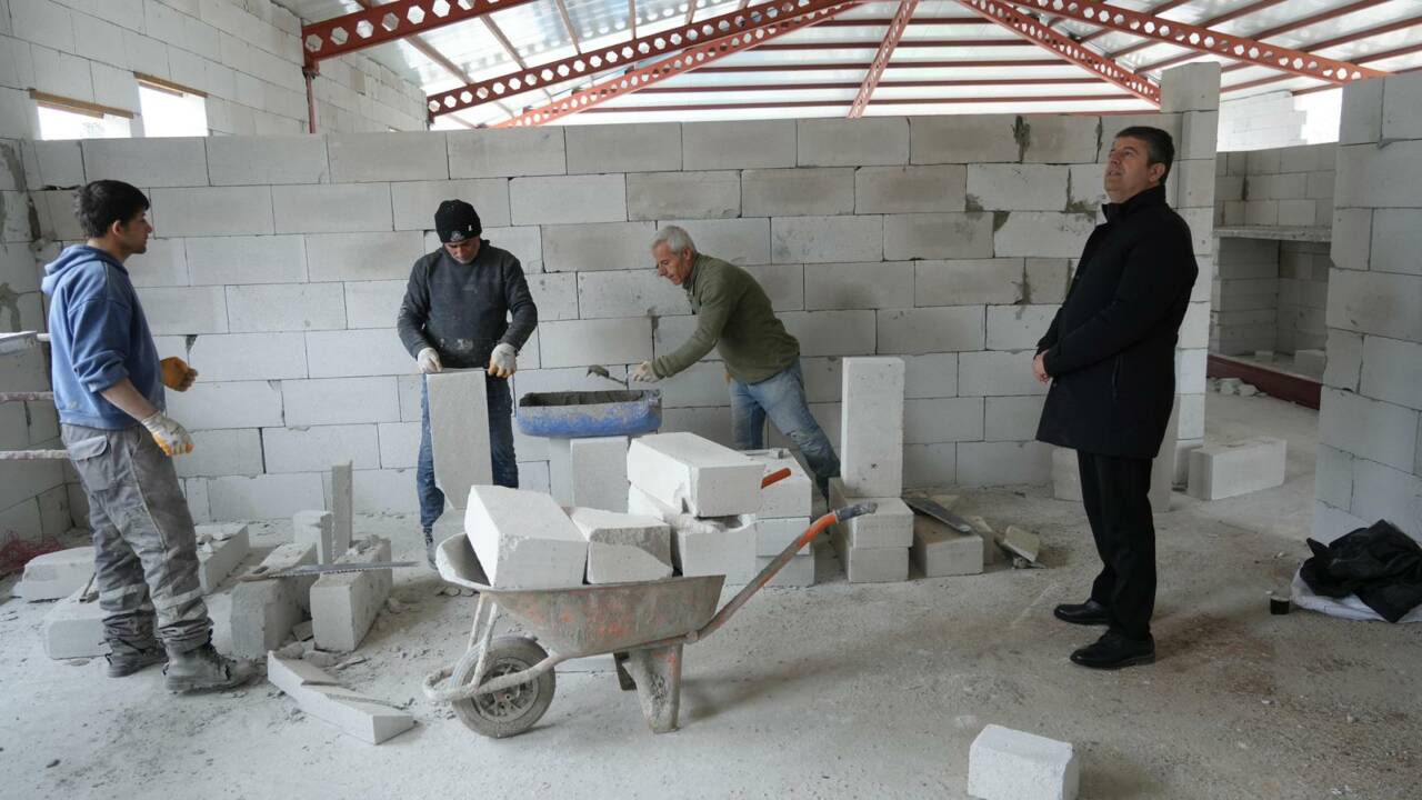 Belediye Başkanı Abdurrahman Tutdere, inşaat alanında yaptığı incelemeler sırasında sadece bilgi almakla kalmadı, çalışmaları bizzat destekledi. Eline malayı alan Başkan Tutdere, duvar ören ustalara yardım etti.