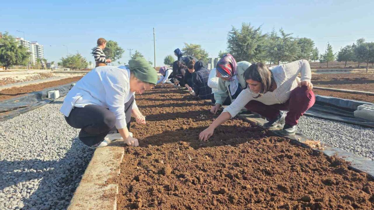 Diyarbakır Büyükşehir Belediyesi tarafından düzenlenen Tıbbi ve Aromatik Bitkiler Yetiştiriciliği Atölyelerine katılan kadınlar, uygulamalı eğitim kapsamında safran ekimi gerçekleştirdi.