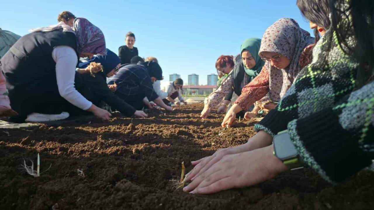 Kadın ve Aile Hizmetleri Dairesi Başkanlığının yürüttüğü Tıbbi ve Aromatik Bitkiler Yetiştiriciliği Atölyeleri sürüyor. Atölyeler, kadınların bilgi ve becerilerini geliştirmeyi, üretime daha aktif katılmalarını sağlamayı hedefliyor. Bu doğrultuda Park ve Bahçeler Dairesi ile İklim Değişikliği ve Sıfır Atık Dairesi Başkanlıklarıyla ortak bir çalışma yürütülerek kadınlar, Tıbbi ve Aromatik Bitki Bahçesinde safran ekimi yaptı. Ekim öncesi düzenlenen atölyede, tarih boyunca “kırmızı altın” olarak bilinen ve bağışıklığı güçlendirici özellikleriyle bilinen safran hakkında kapsamlı bilgiler paylaşıldı. Katılımcılara safranın ekim yöntemleri, yetiştirme koşulları, hasat süreçleri ve pazarlama imkanlarına ilişkin hem teorik hem de uygulamalı eğitim verildi. Atölyenin ardından kadınlarla birlikte sahada safran ekimi yapılarak öğrenilen bilgilerin uygulamayla pekişmesi sağlandı.