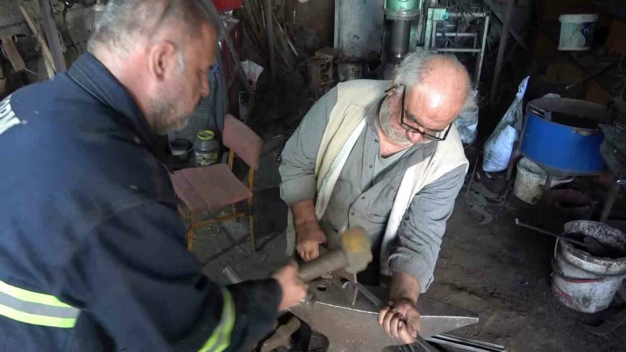 Adıyaman’da yaşayan Mustafa Uyan yarım asırdır sıcak demiri döverek tarım aletlerine dönüştürüyor.