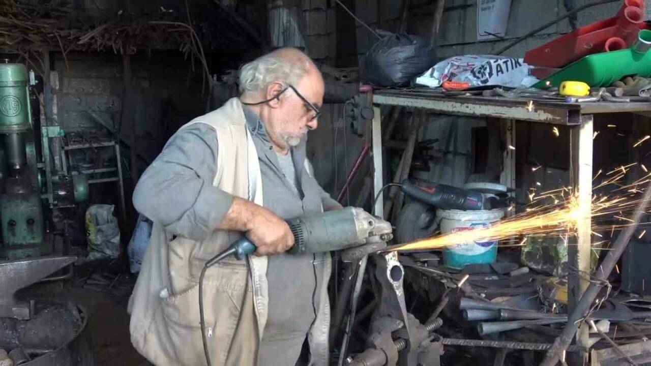 Adıyaman’da yaşayan Mustafa Uyan yarım asırdır sıcak demiri döverek tarım
