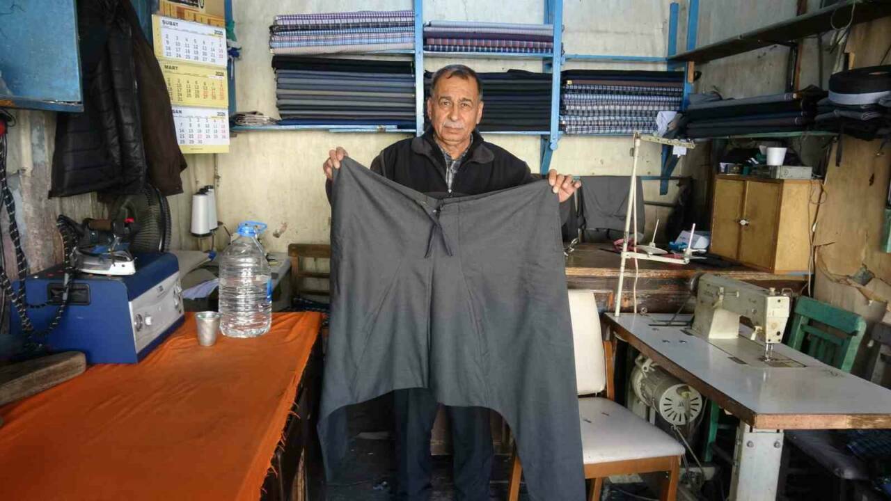 GAZİANTEP’TE BABASINDAN ÖĞRENDİĞİ TERZİLİK MESLEĞİNİ YARIM ASIRDIR SÜRDÜREN YAŞLI ADAM, GELİŞEN TEKNOLOJİYE VE HAZIR GİYİM SEKTÖRÜNE RAĞMEN GELENEKSEL ŞALVAR DİKİMİNE DEVAM EDİYOR.