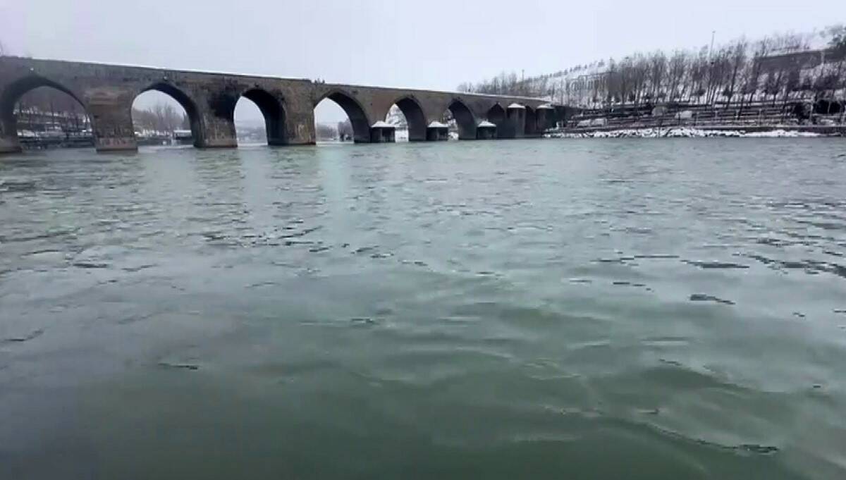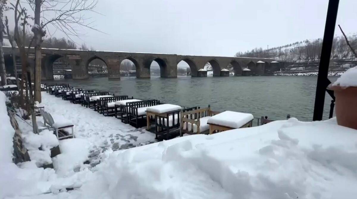 Diyarbakır’da, son dönemlerin en çetin kış mevsimi yaşanıyor. Özellikle yeni yıl ile birlikte neredeyse karsız günü bulunmayan Diyarbakır’da tarihi On Gözlü Köprünün de bulunduğu Dicle Nehri’nin su seviyesi belirgin derecede arttı. Kar yağışı ile birlikte eşsiz bir manzaraya bürünen tarihi On gözlü köprü ve Dicle Nehri, yaban hayattaki misafirlerini de ağırladı. Bölgede türüne az rastlanan Karabaş martıları da hava, su seviyesi ve besin koşulları uygun hale gelince görünür oldu.